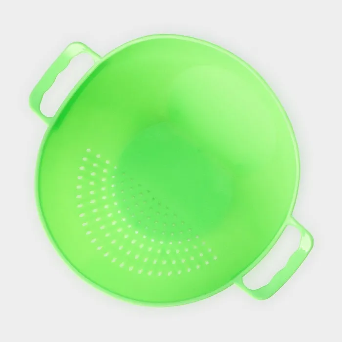 Без удобных качественных принадлежностей на кухне точно не обойтись. Замените несколько ёмкостей одним многофункциональным предметом. Изделие сочетает в себе дуршлаг, миску для фруктов и овощей и сито для промывания круп. Помойте фрукты в миске, а затем слегка наклоните её, чтобы слить воду. После чего используйте миску в качестве фруктовницы. А также идеально подойдёт для промывания отваренных макарон, мытья ягод, зелени и грибов.