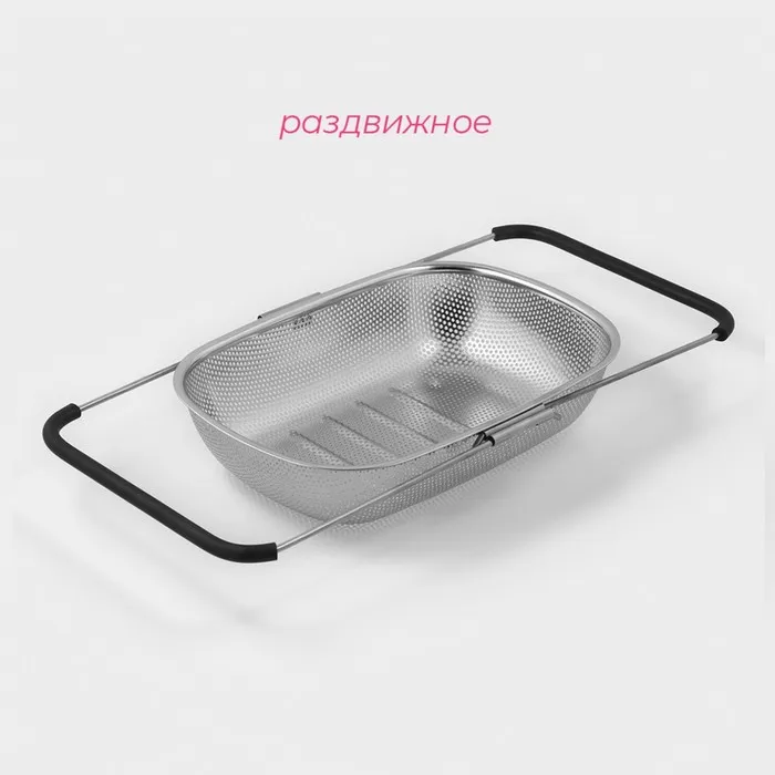 Дуршлаг - сито на раковину раздвижной, 34.5×24×7.5 см, нержавеющая сталь — Характеристики