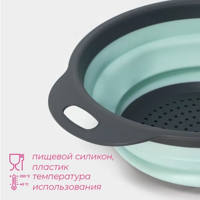 К тому же, если дуршлаг сделан из пластмассы, то его не рекомендуется использовать для слива горячей жидкости. Наиболее удобная модификация дуршлага – это складная конструкция, выполненная из силикона. Инновационный материал, который получил большое распространение в медицинской области, стал настоящей находкой для производителей, специализирующихся на выпуске безопасной, практичной и оригинальной продукции для кухни. Благодаря свойству этого уникального материала, складной дуршлаг способен выдерживать большие перепады температур, а его складная конструкция позволяет занимать минимум места при хранении.