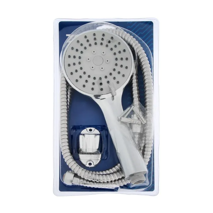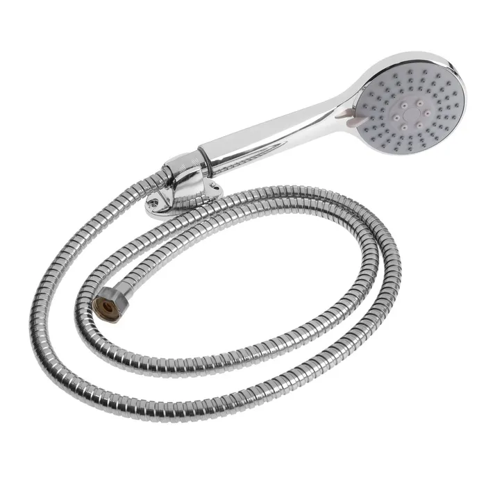 Набор для душа ZEIN Z0303 — сантехническое изделие, применяемое в ванных комнатах и банях. Органично вписывается в интерьер душевых кабин и помывочных помещений банных комплексов. В комплект входят душевая лейка, шланг и настенное крепление.