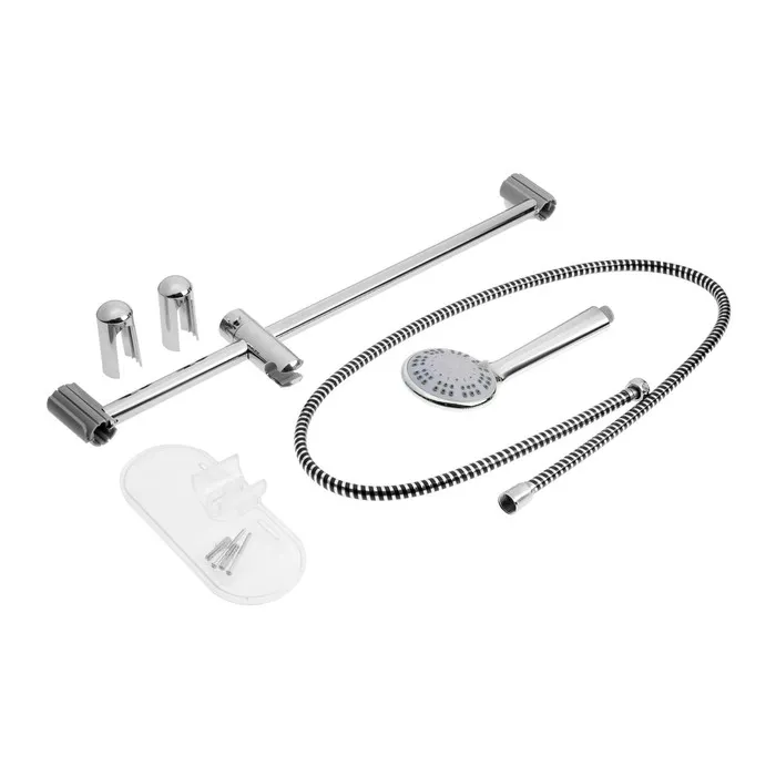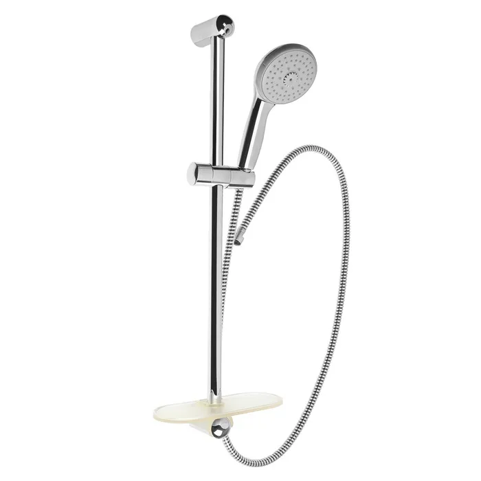 Душевая лейка со шлангом, стойкой, мыльницей и держателем, крепеж в комплекте.