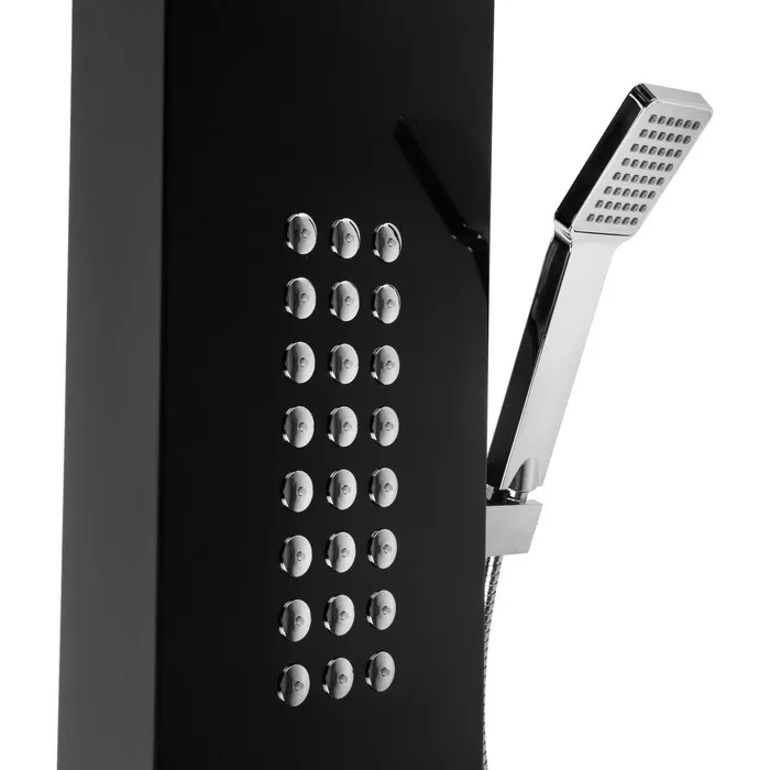 У панели присутствует 4 функции: тропический (верхний) душ, ручной душ, массажные форсунки и смеситель с изливом в корпусе, обеспечивая разнообразные варианты водных процедур.