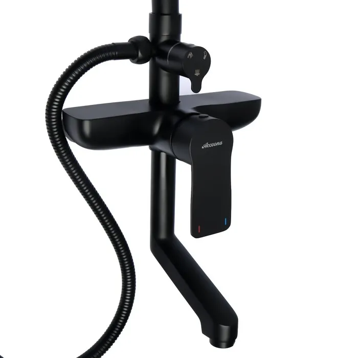 Душевая система Accoona A83207F, однорычажный, излив 141 мм, тропический душ, лейка, черный