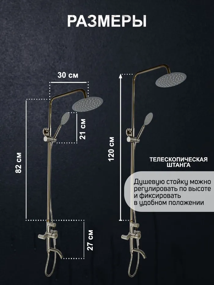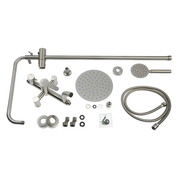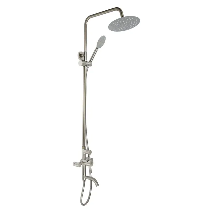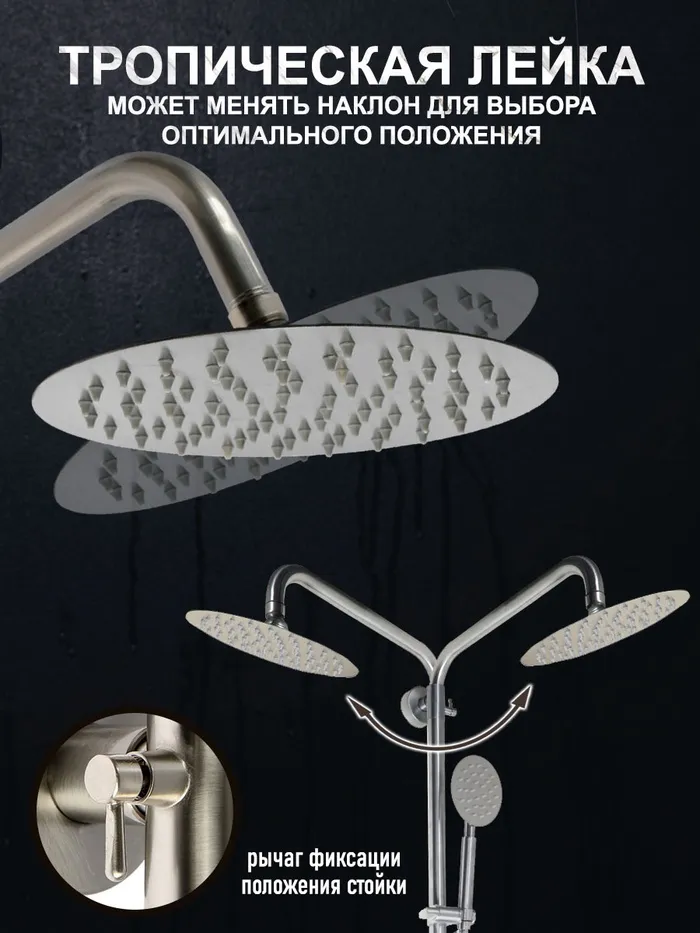 Душевая система ZEIN Z1008, смеситель, тропическая и ручная лейка, стойка, круглая, сатин — Характеристики