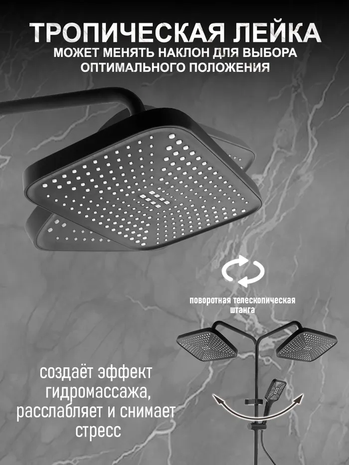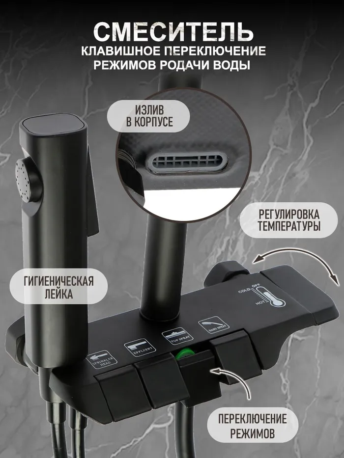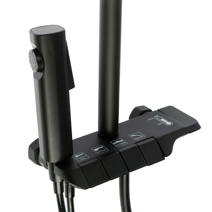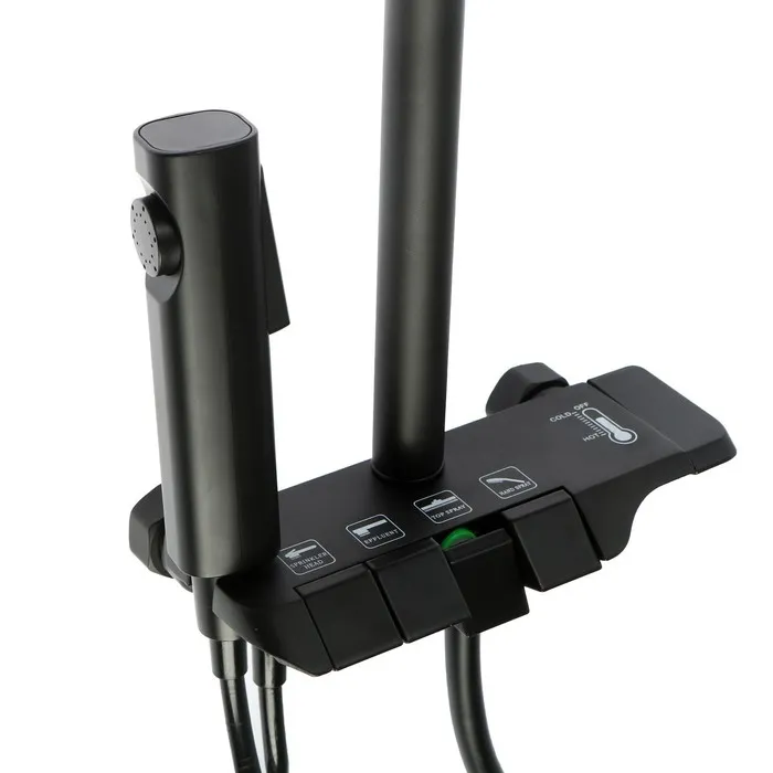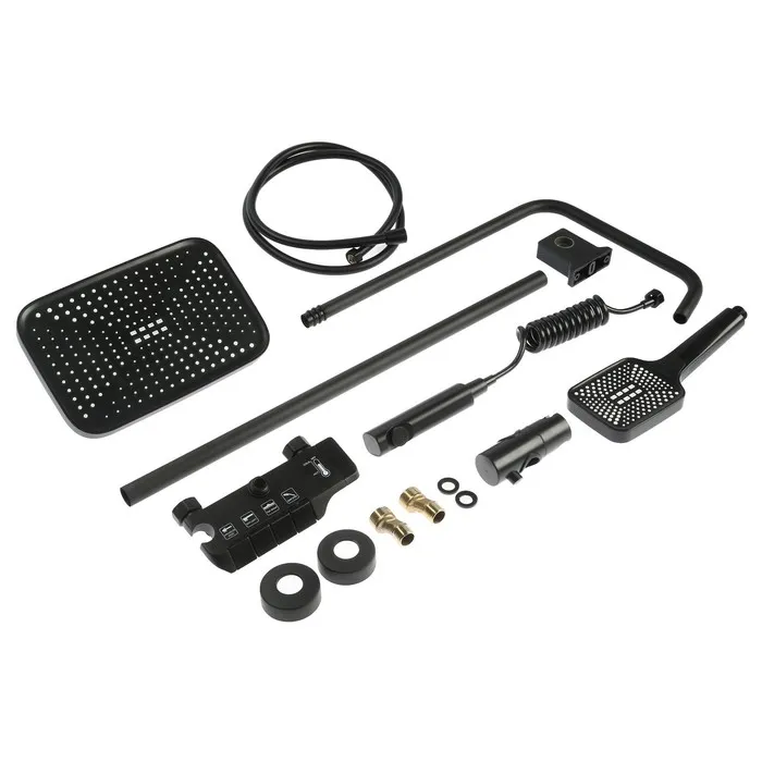 Душевая система ZEIN Z3684, верхняя и ручная лейка, ПВХ шланг, гигиенический набор, черная — Характеристики