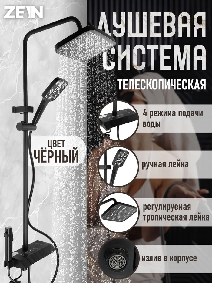 Душевая система ZEIN предназначена для обустройства ванной комнаты.