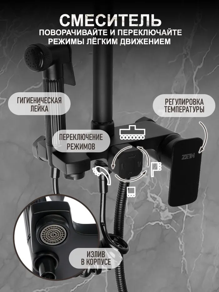 Душевая система ZEIN предназначена для обустройства ванной комнаты.