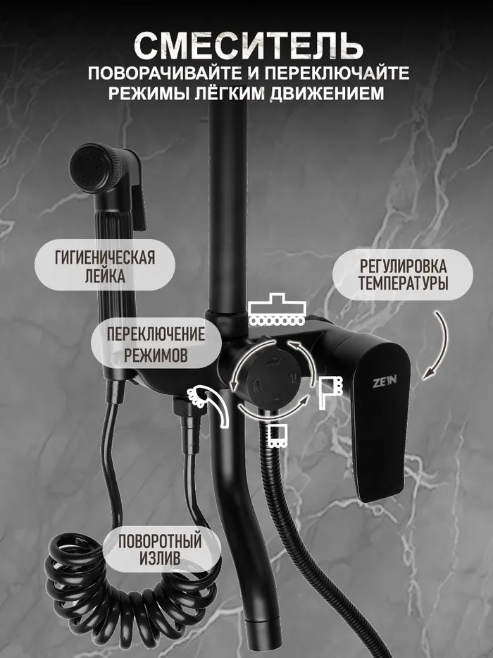 Душевая система ZEIN предназначена для обустройства ванной комнаты.