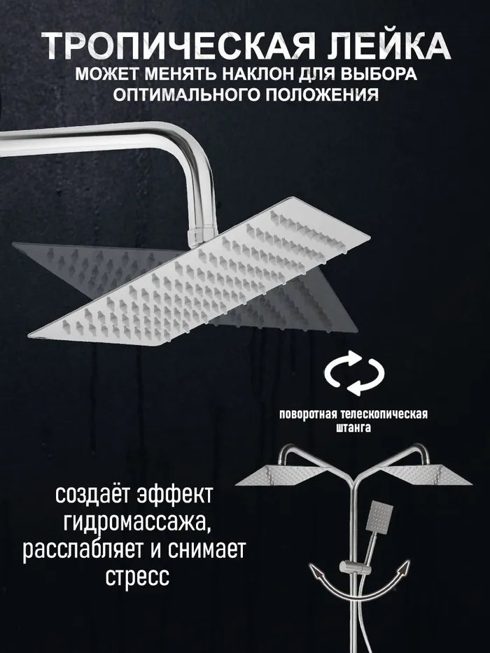Душевая система ZEIN Z3866, смеситель, излив, тропическая и ручная лейка, латунь, хром — Характеристики