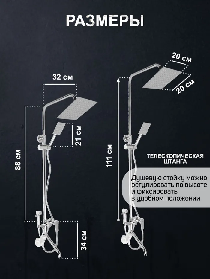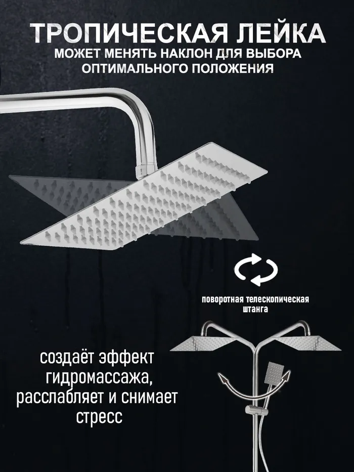 Душевая система ZEIN Z3867, смеситель, тропическая и ручная лейка, латунь, хром — Характеристики