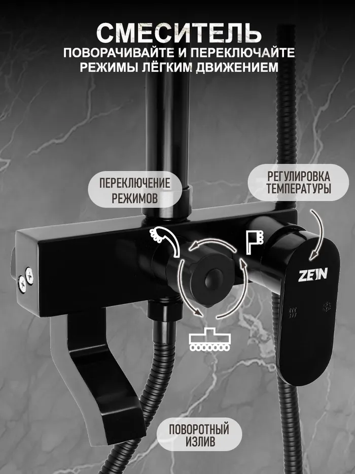 Душевая система ZEIN предназначена для обустройства ванной комнаты.