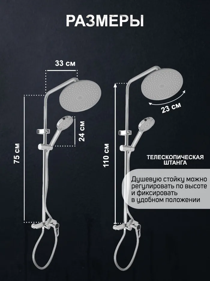Душевая система ZEIN Z3892, излив в корпусе, лейка верхняя d=23 см, ручная 11.5 см, хром — Характеристики