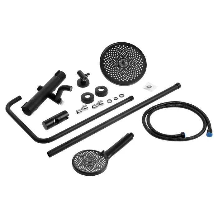 Душевая система ZEIN Z3895, с термостатом, лейка верхняя d=23 см, ручная 12.5 см, чёрная — Характеристики