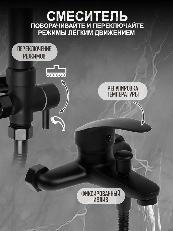 Душевая система ZEIN ZS-3F, смеситель, тропическая и ручная лейка 3 режима, латунь, черный — Характеристики