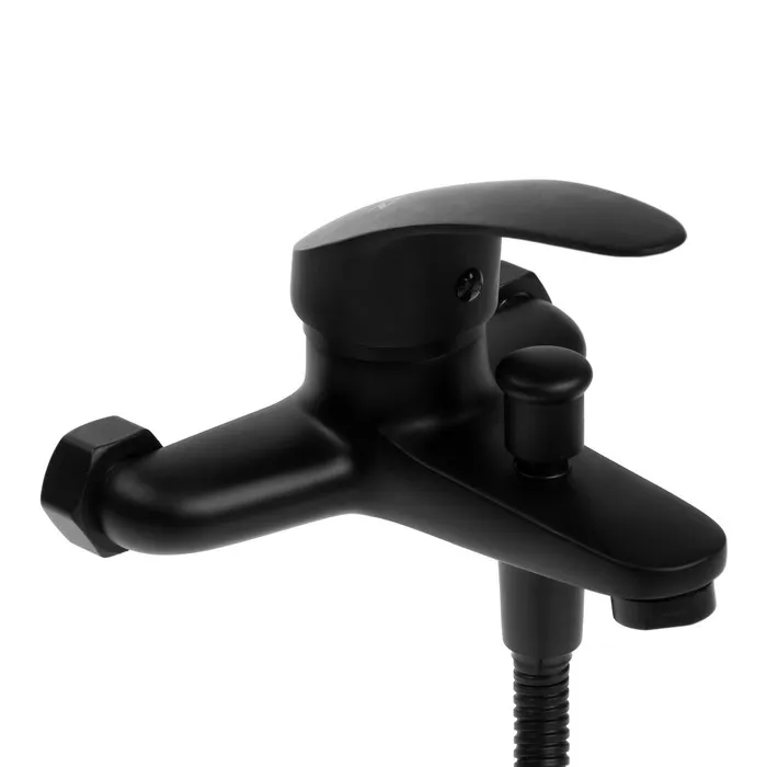 Конструкция фиксируется на стене. Модель оснащена смесителем с изливом. На штанге расположен держатель для лейки со шлангом. Сверху находится тропическая лейка.