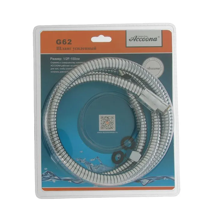 Душевой шланг Accoona G62, усиленный, 150 см, антиперекручивание, латунная гайка, хром — Характеристики