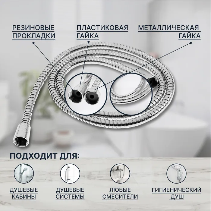 Душевой шланг ZEIN TDK002, 150 см, гайка металл, гайка пластик 1/2", Имп/Имп — Характеристики