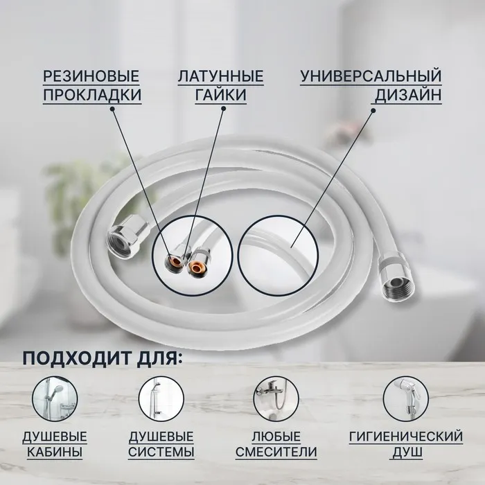 Душевой шланг ZEIN Z12PG, 150 см, антиперекручивание, латунные гайки, белый, Имп/Имп — Характеристики
