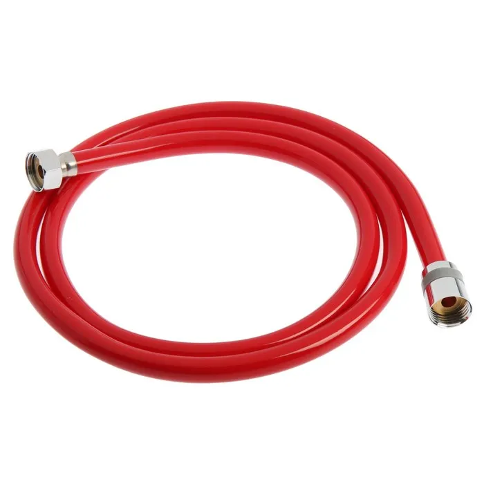 Гибкая конструкция изделия удобна в эксплуатации.Простой монтаж и продолжительный срок службы.Длина изделия — 150 см.Цвет шланга — бордовый.Оплетка выполнена из ПВХ.
