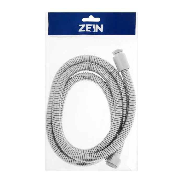 Душевой шланг ZEIN Z21PS, растягивающийся 150-200 см, гайки металл, нержавеющая сталь, хром, Имп/Имп — Характеристики