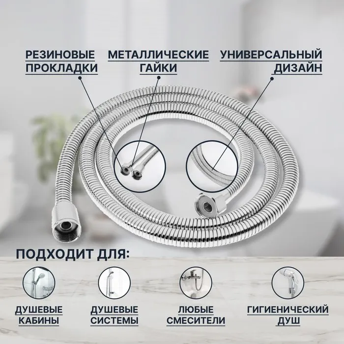 Шланг для душа отлично подойдет к любой современной ванной. Длина шланга 150 см с возможностью растяжения до 200 см. Его удобно и легко использовать с любым душевым гарнитуром или душевым держателем.