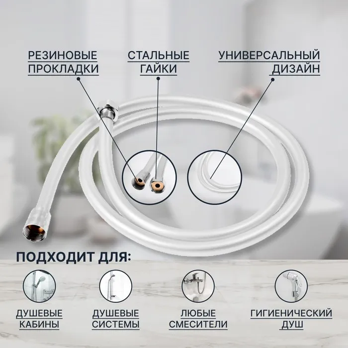 Душевой шланг ZEIN Z31PS, 150 см, гайки стальные, латунная втулка, силикон, серебристый, Имп/Имп — Характеристики