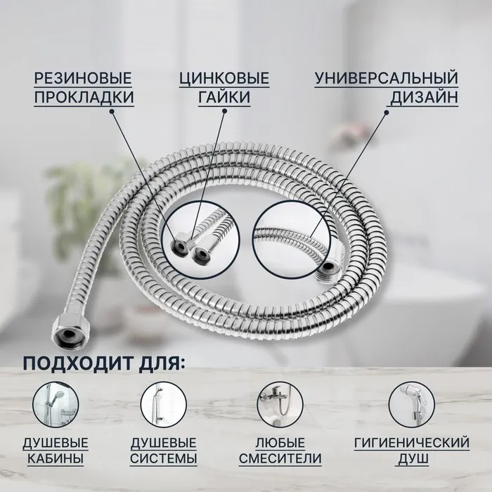 Душевой шланг ZEIN Z46PS, 150 см, цинковые гайки 1/2", пластиковые втулки, нержавеющая сталь, Имп/Имп — Характеристики