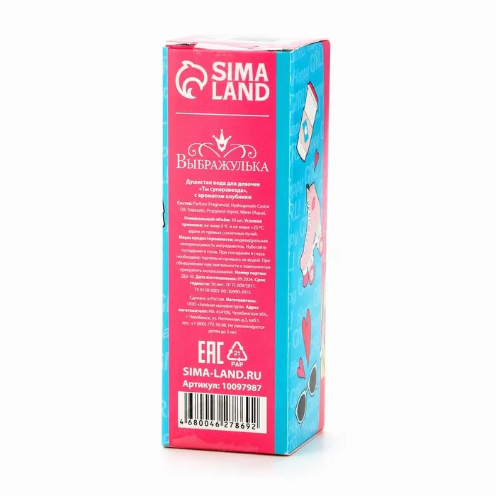 Душистая вода детская «Ты супер звезда», 30мл, клубника — Характеристики