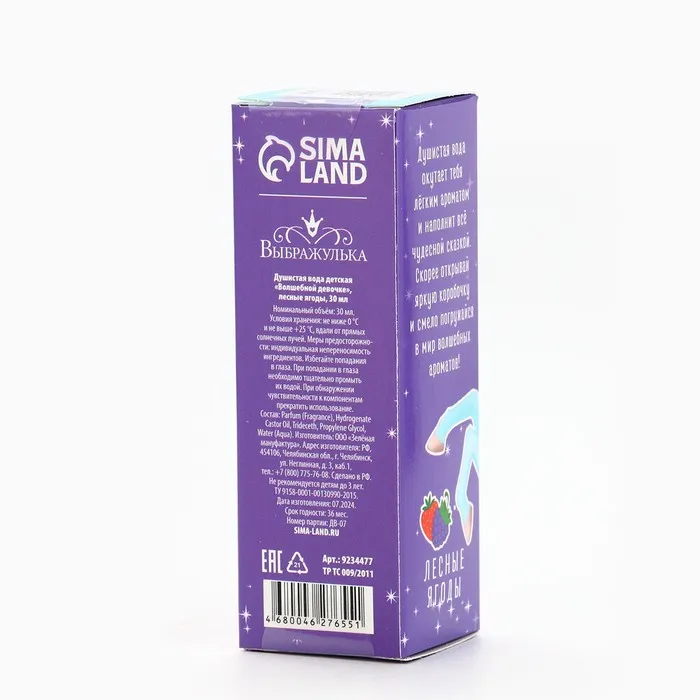 Душистая вода детская «Волшебной девочке» с ароматом лесных ягод, 30 мл — Характеристики