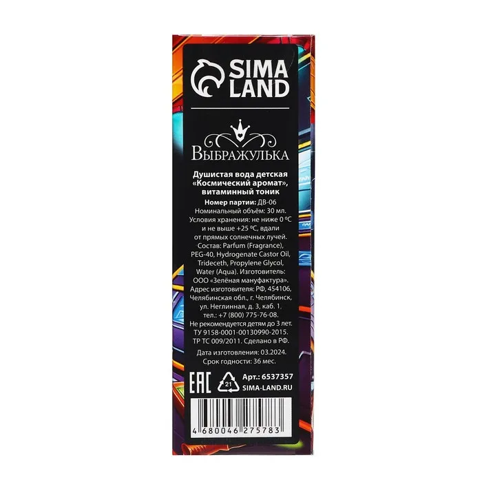 Душистая вода для мальчиков «Космический аромат», аромат витаминный тоник, 30 мл — Характеристики