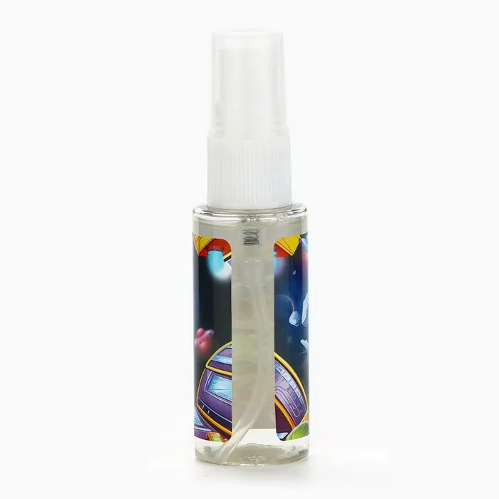 Флакон оснащён удобным спреем-дозатором и изготовлен из пластика. Он не разобьётся, если ребёнок вдруг его уронит. Объём флакона — 30 мл.