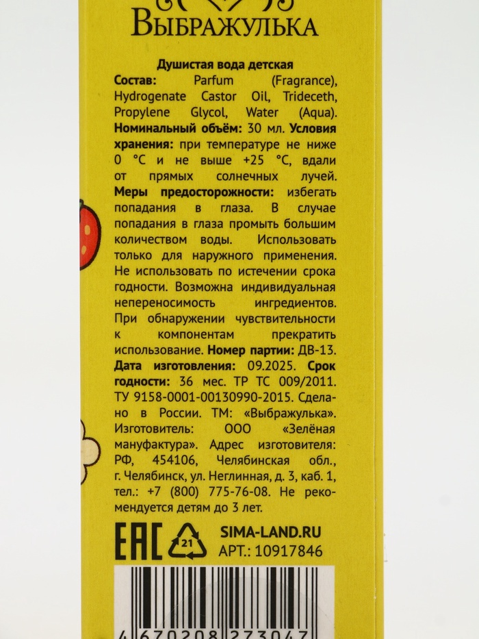 Душистая вода «Капибарное настроение», 30 мл, аромат клубника — Характеристики