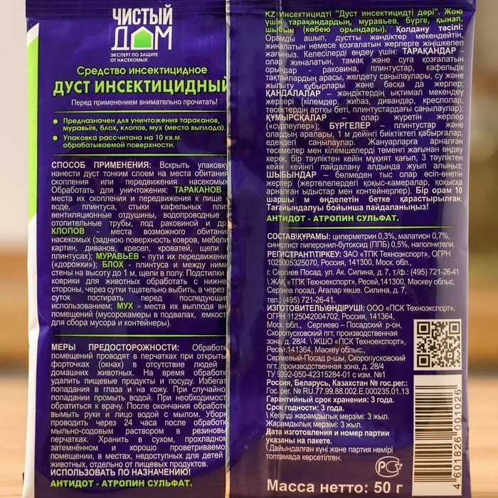 Дуст инсектицидный от тараканов, блох, клопов, муравьев Чистый дом 50 г — Характеристики