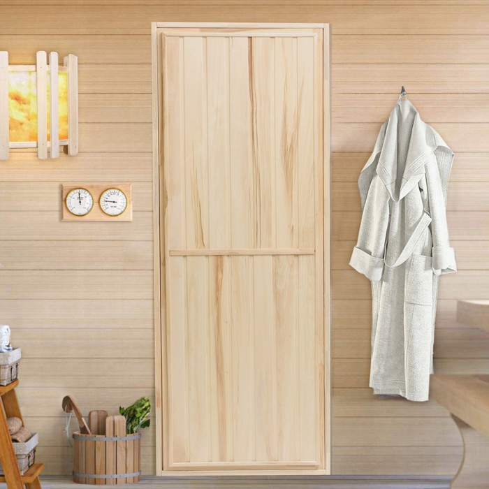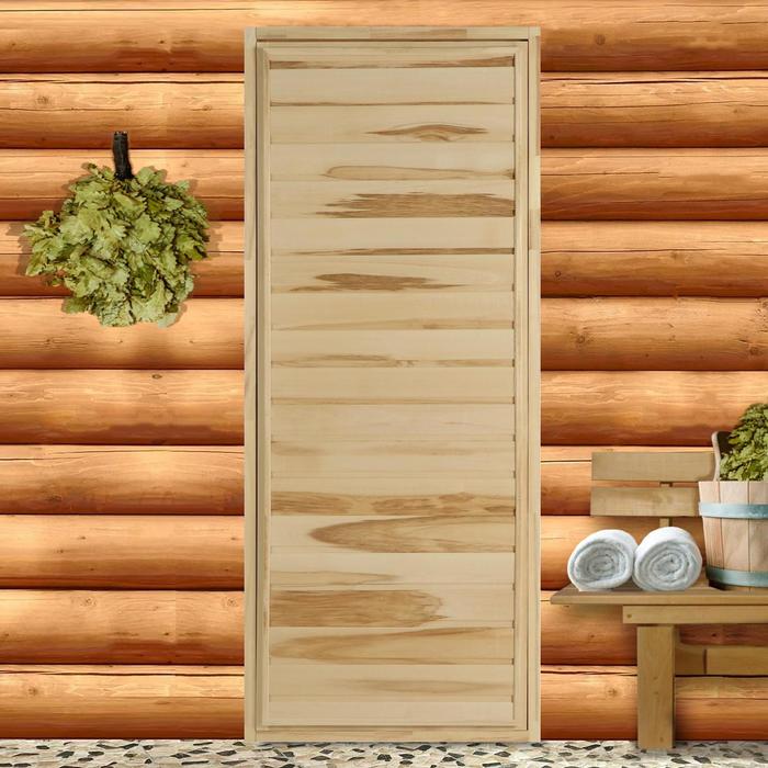 Дверь для бани и сауны, размер коробки 190×80 см, массив сосны, на клиньях, «Добропаровъ» — Характеристики