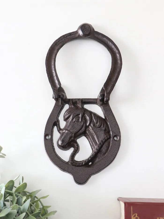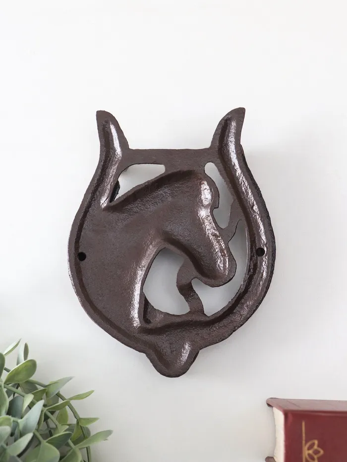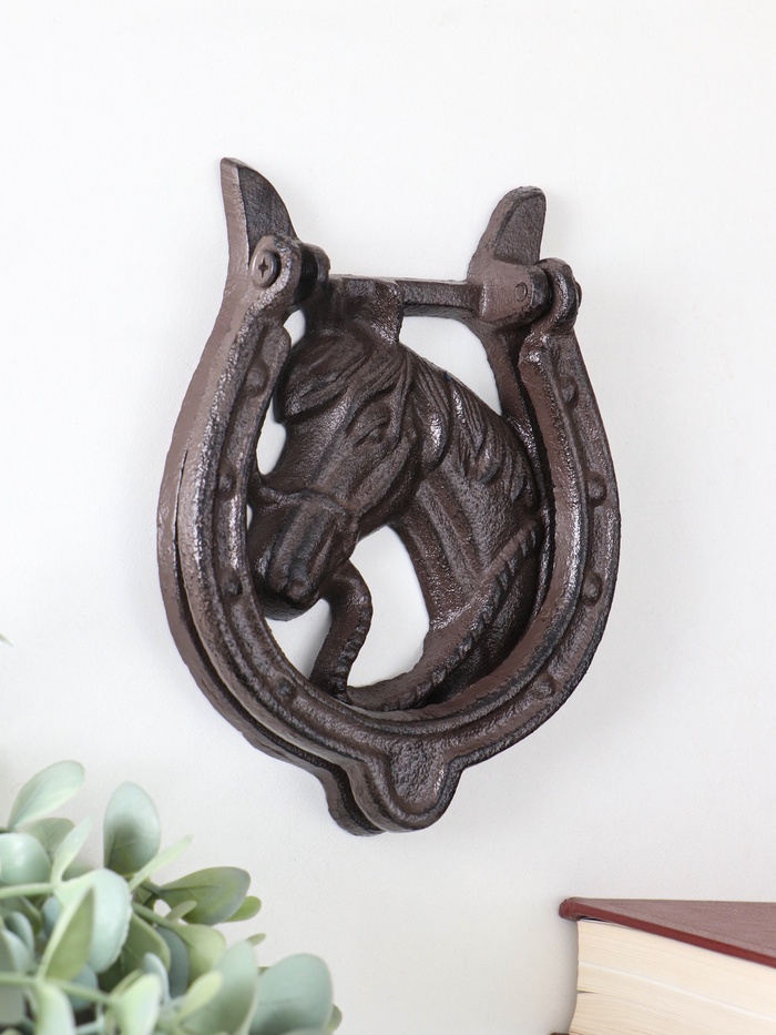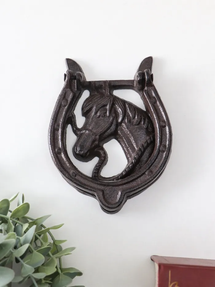 Дверной молоток для входной двери «Конь в подкове», чугун, 12×2×15 см — Характеристики