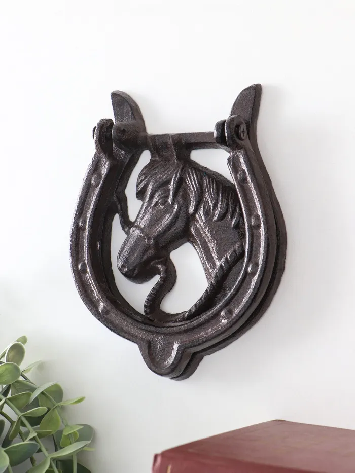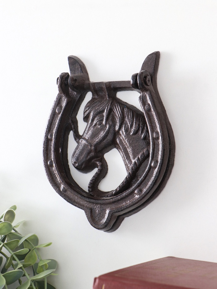 Дверной молоток для входной двери «Конь в подкове», чугун, 12×2×15 см