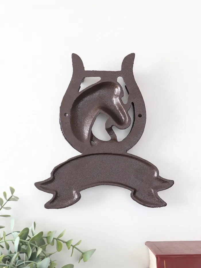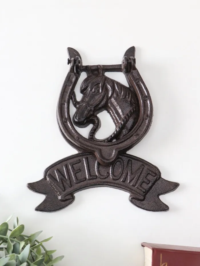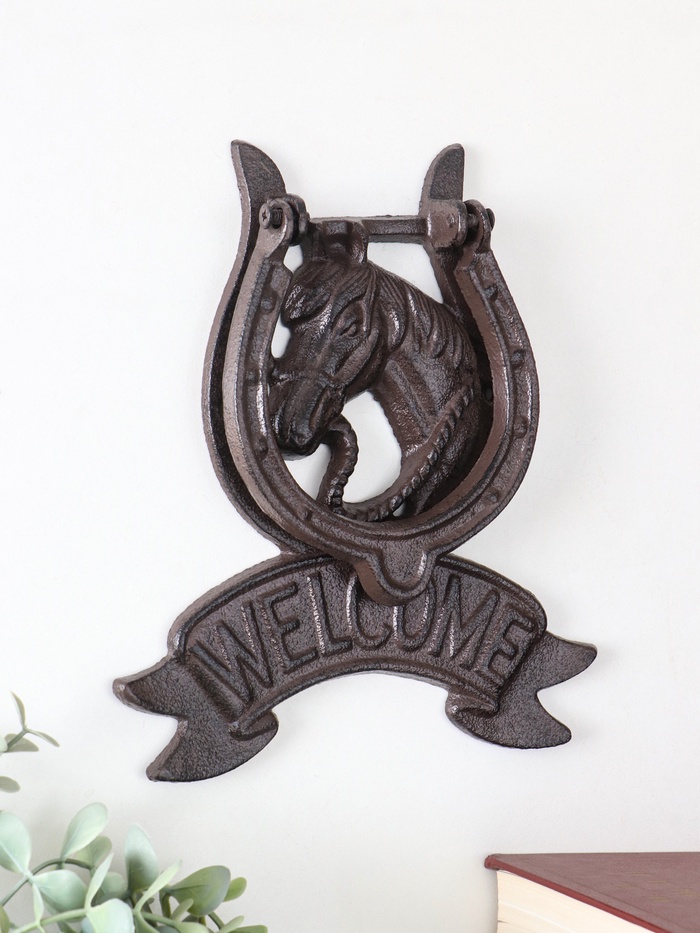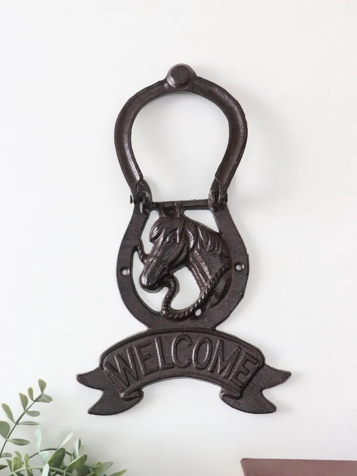 Дверной молоток для входной двери «Конь в подкове - Welcome», чугун, 18×2×21 см