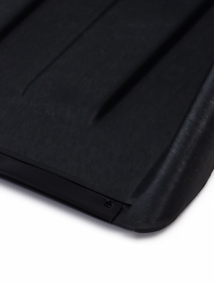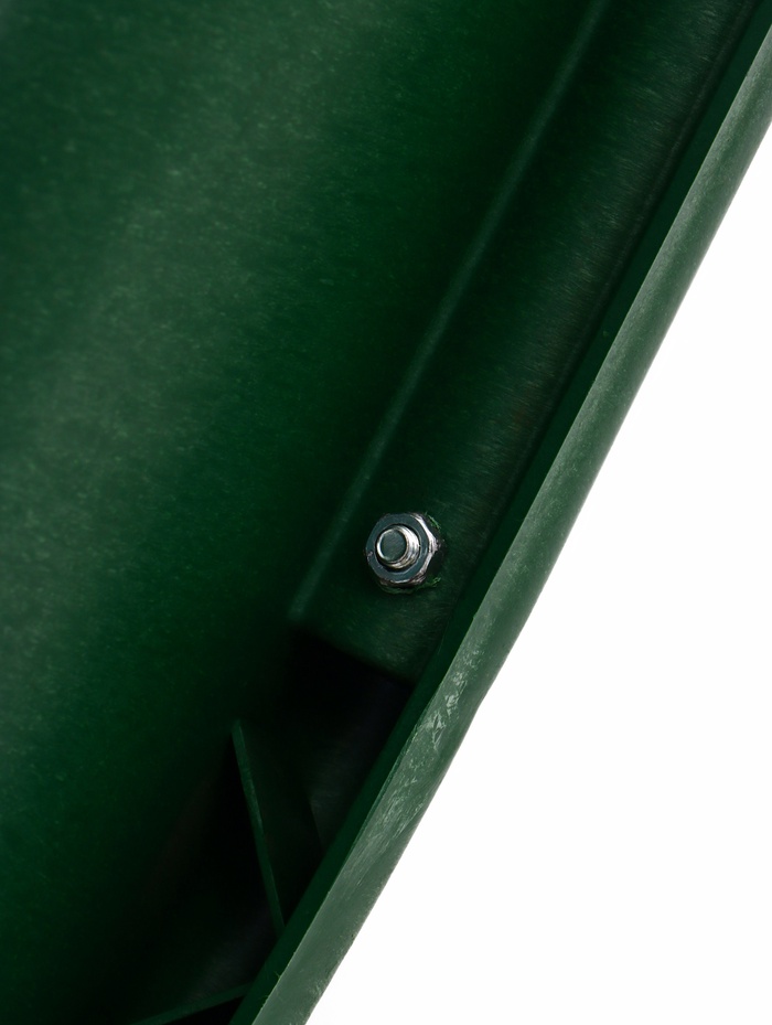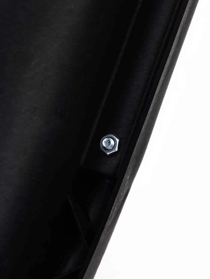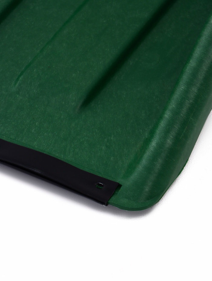 - Усиленная передняя кромка: оцинкованная планка предотвращает истирание пластика об асфальт или брусчатку.