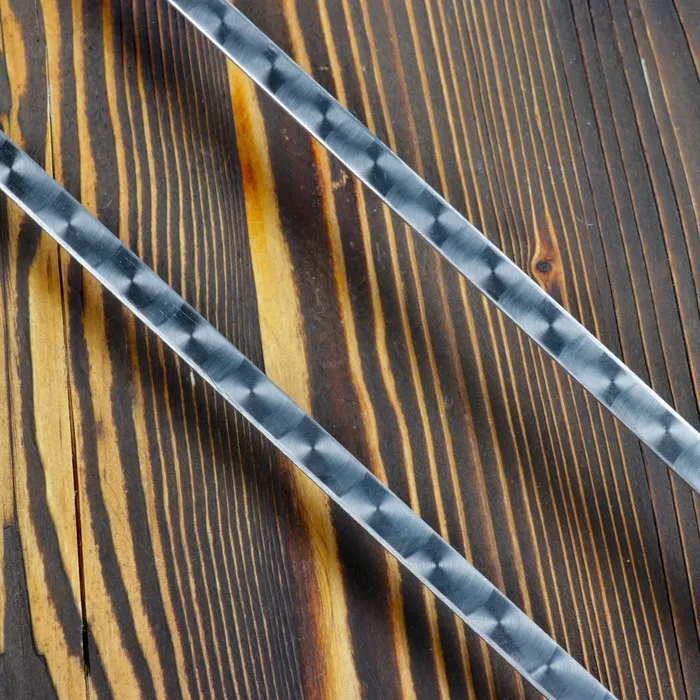 Шампур с деревянной ручкой, рабочая длина - 50 см, ширина - 18 мм, толщина - 2.5 мм, с узором