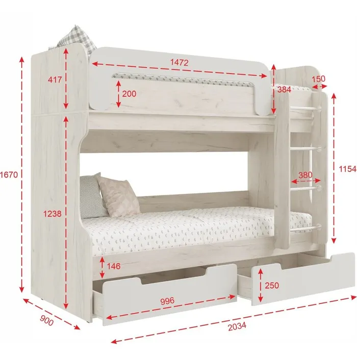 Двухъярусная кровать Юниор-4, 2034х900х1670, Шарли белый/Дуб крафт белый — Характеристики