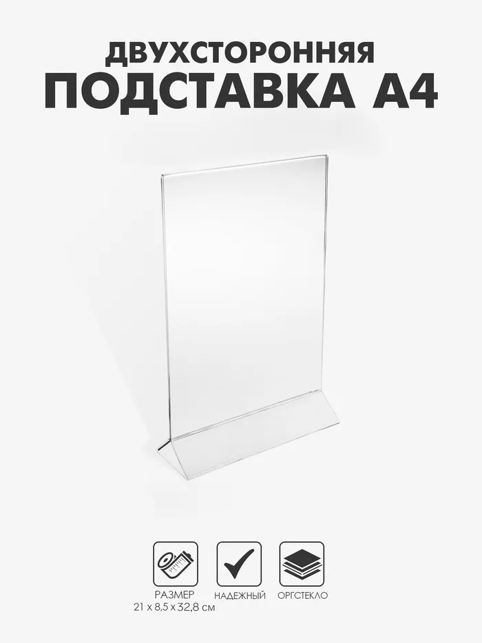 Двухсторонняя подставка А4, оргстекло 1 мм, 21×8.5×32.8 см — Характеристики