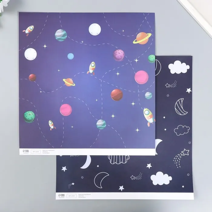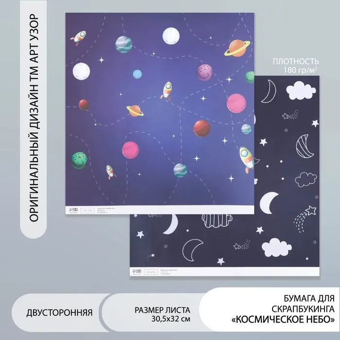Двусторонняя бумага для скрапбукинга «Арт Узор. Космическое небо», 180 г/м², 30.5×32 см — Характеристики