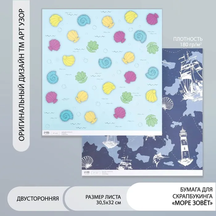 Двусторонняя бумага для скрапбукинга «Арт Узор. Море зовёт», 180 г/м², 30.5×32 см — Характеристики