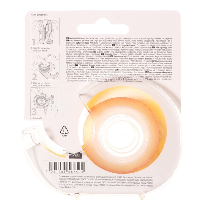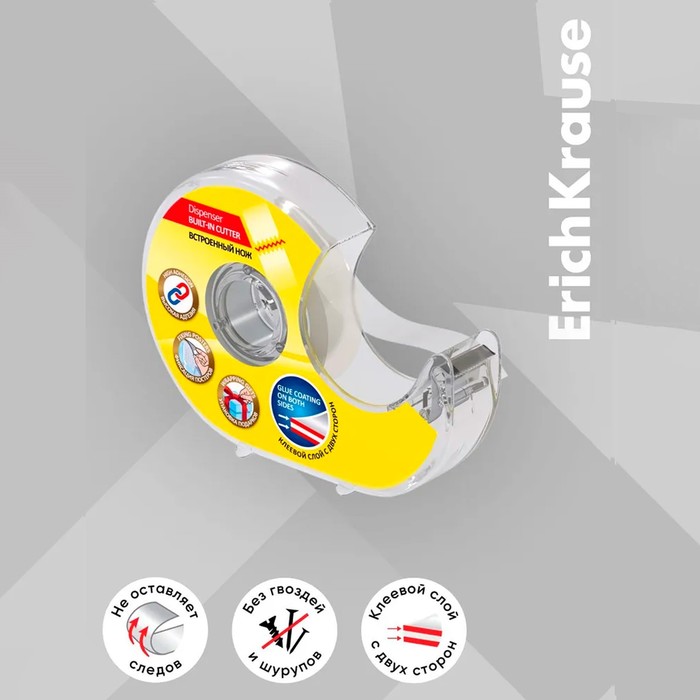 Лента идеально подходит для творчества, декора и множества бытовых нужд, гарантирует, что ваши проекты будут выглядеть аккуратно и профессионально. Благодаря компактному удобному диспенсеру вы можете легко отмерять и отрезать нужное количество ленты, поддерживая порядок на рабочем месте.