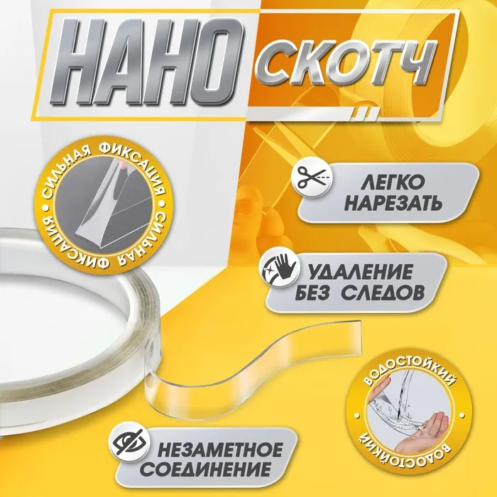 Двусторонняя самоклеящаяся лента ЛОМ, 10 мм × 2 м — Характеристики