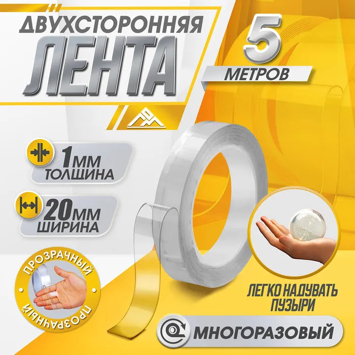 Двусторонняя самоклеящаяся лента ЛОМ, 20 мм × 5 м — Характеристики