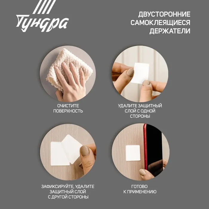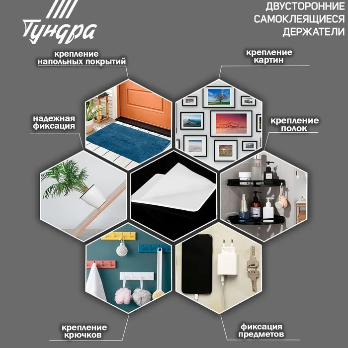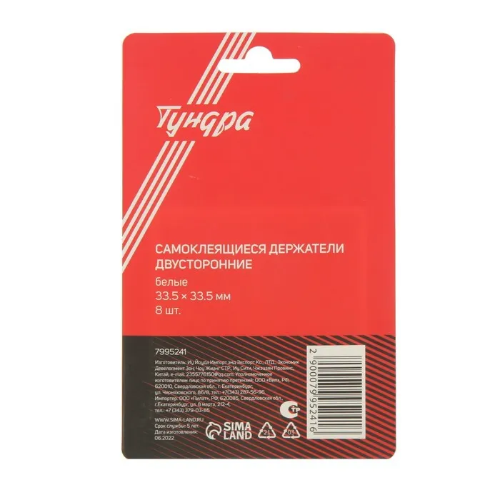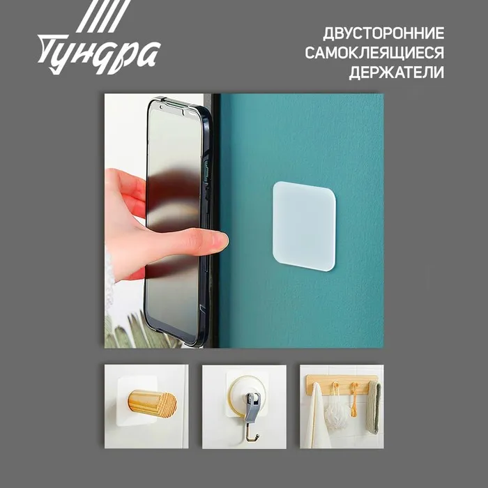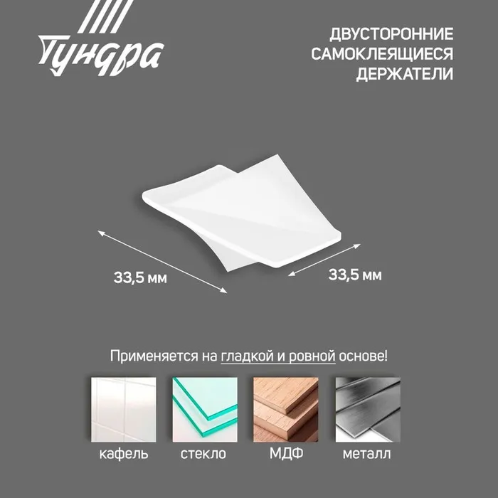Двусторонние самоклеящиеся держатели ТУНДРА, 33,5х33,5 мм, 8 шт. — Характеристики