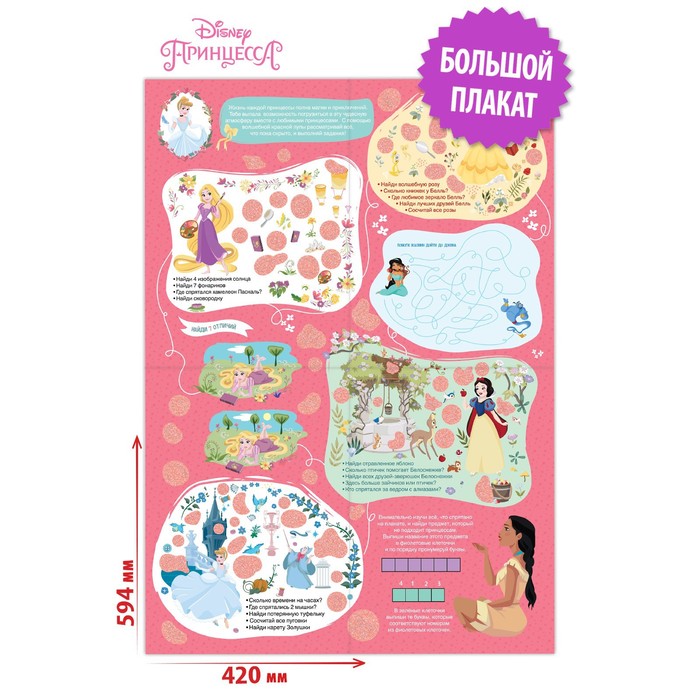 Двусторонний плакат с секретами и лупой «Волшебный плакат», А2, Принцессы — Характеристики