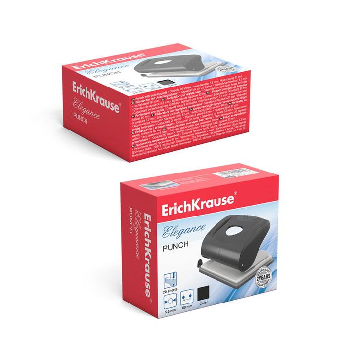 Дырокол ErichKrause Elegance, до 20 листов, диаметр прокола 5.5 мм, расстояние между проколами 80 мм, МИКС — Характеристики