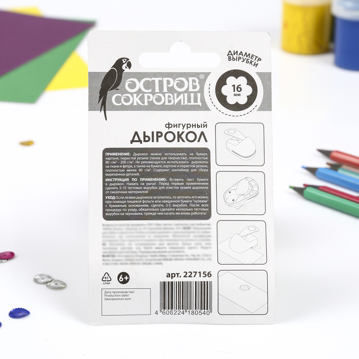 Дырокол фигурный "Ромашка", диаметр вырезной фигуры 16 мм — Характеристики
